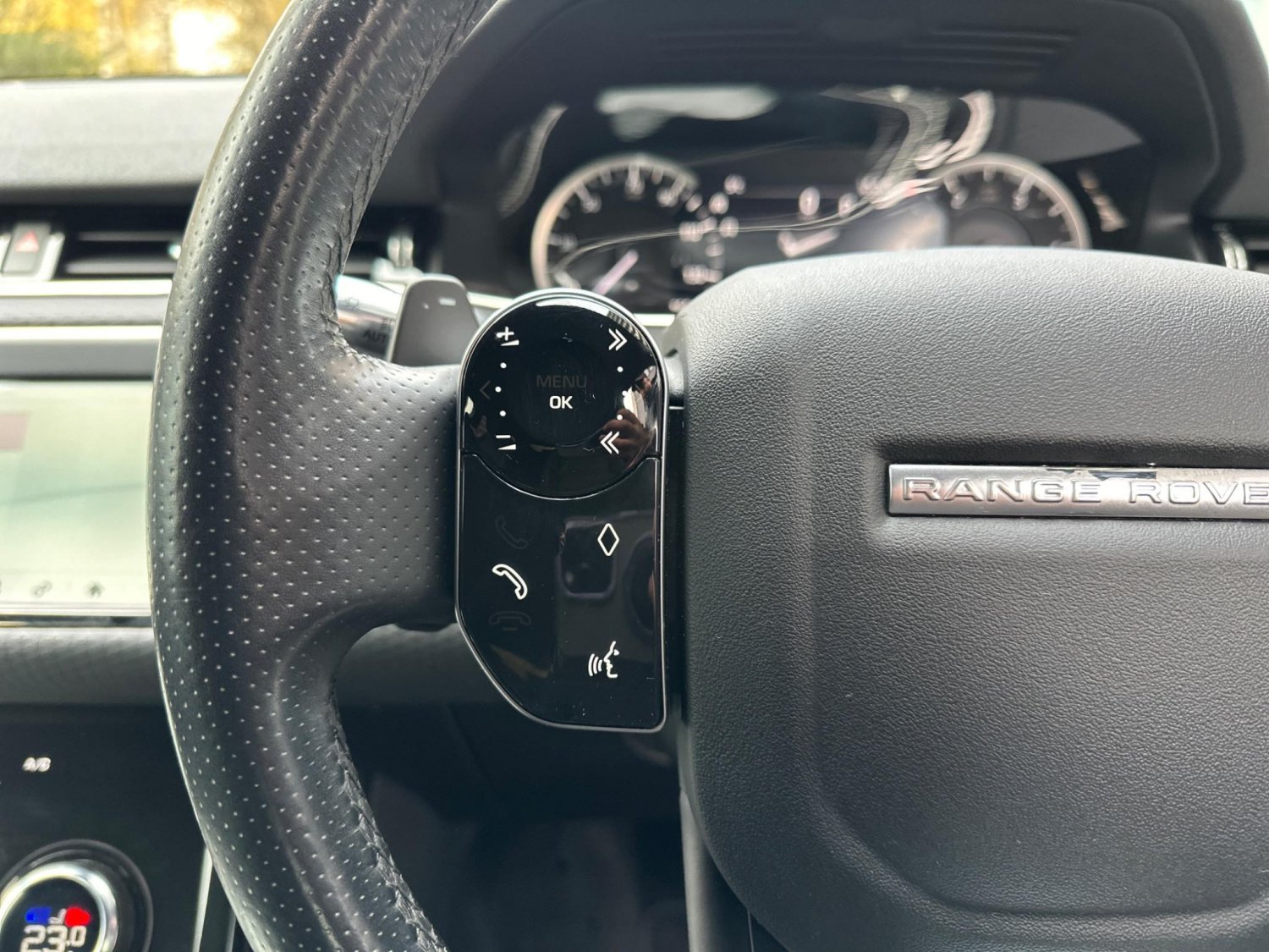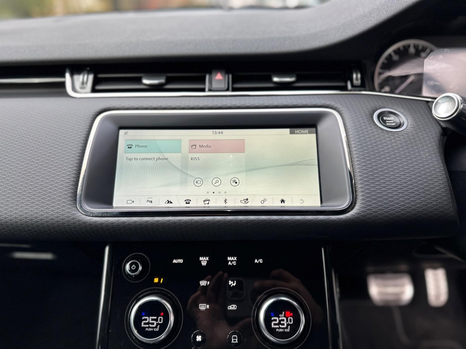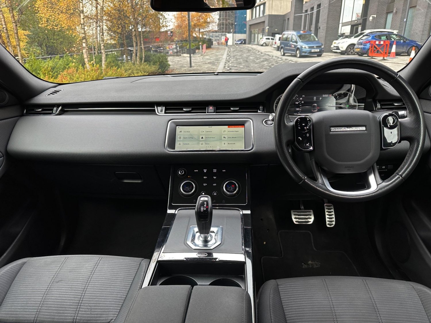 D150 Badge, DAB - Digital Audio Broadcast, DSC - Dynamic Stability Control, Driver Condition Monitor, EBA - Emergency Brake Assist, EBD - Electronic Brake-Force Distribution, EPAS - Electronic Power Assisted Steering, ETC - Electronic Traction Control, Efficient Driveline, Electric Parking Brake, Electric Windows with One-Touch Open-Close and Anti-Trap, Evoque and R-Dynamic Badge, Flush Deployable Door Handles, Front and Rear Parking Aid, HDC - Hill Descent Control, Headlining - Ebony Morzine, Heated Door Mirrors, Heated Rear Window with Timer, Hill Launch Assist, InControl - Remote App, InControl Apps, Interior Rear View Mirror - Manual Dipping, Intrusion Sensor, LED Headlights, Lane Keep Assist, Leather Steering Wheel, Locking Wheel Nuts, Low Traction Launch, Manual Headlight Levelling, Manual Tailgate, Manually Adjustable Steering Column, Overhead Lighting Console, Overhead Stowage for Sunglasses, Passive Front Headrests, Passive Suspension, Power Operated Child Locks, Power Socket Pack 1, Push Button Start, R-Dynamic Exterior Pack, RSC - Roll Stability Control, Rain Sensing Windscreen Wipers, Rear Air Vents, Rear Fog Lights, Rear ISOFIX, Rear View Camera, Seat Belt Reminder, Seats - Rear Centre Head Restraint, Side Curtain Airbags and Thorax, Sound System, Standard Roof, Sun Visors - Illuminated Vanity Mirrors, TPMS - Tyre Pressure Monitoring System, Tailgate Spoiler, Terrain Response 2, Torque Vectoring, Trim Finish - Gradated Linear Dark Aluminium, Twin Front Cupholders with Cover, Twin Sliding Front Centre Armrest, Two-Zone Climate Control, Tyre Repair System, Voice Control, Windscreen - Heated, Windscreen Washer Jets - Heated, 10in Touch Pro, 17in Alloy Wheels - 5 Split Spoke - Style 5073 - Satin Dark Grey, 40-20-40 Split Fold Rear Seat, 8-Way Heated Manual Front Seats, ABS - Anti Lock Braking System, ATPC - All Terrain Progress Control, Airbags - Driver Knee, Airbags - Front - Driver and Front Passenger, All Season Tyres, Ambient Interior Lighting, Analogue Dials with Central TFT Display, Android Auto, Apple CarPlay, Automatic Headlights, Autonomous Emergency Braking, Black Gearshift Paddles, Bluetooth Connectivity, Body Coloured Roof, Brake Pad Wear Indicator, Bright Metal Pedals, Carpet Mats, Chrome Treadplates, Cruise Control and Speed Limiter, Customer Configurable Autolock